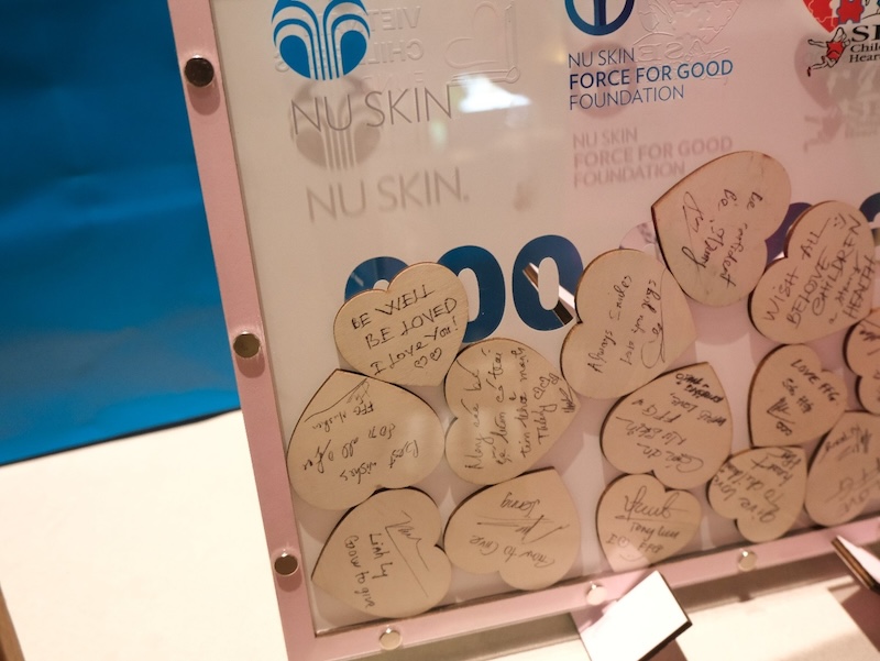 Đại diện Nu Skin Việt Nam ký tên, gửi lời yêu thương đến các bệnh nhi mắc bệnh tim bẩm sinh. (Ảnh: Nu Skin Việt Nam)