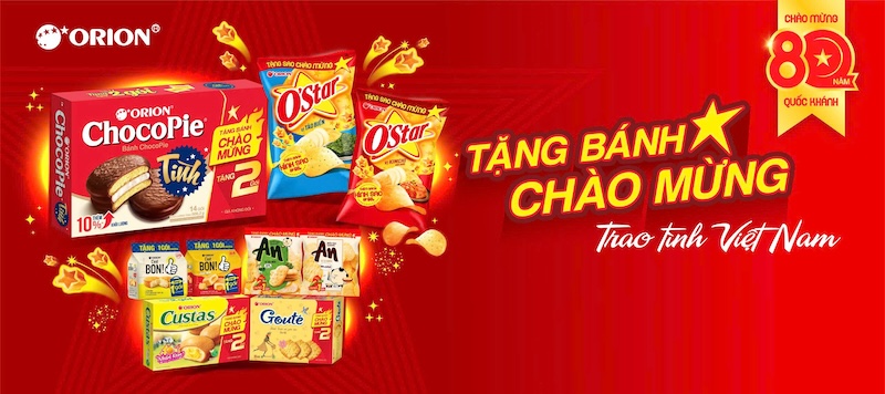 Có mặt tại Việt Nam từ năm 1997 và chính thức thành lập công ty vào năm 2005, Orion đã trải qua 25 năm gắn bó, đồng hành cùng người tiêu dùng Việt qua những sản phẩm không chỉ ngon miệng mà còn lưu giữ biết bao khoảnh khắc sẻ chia. Trong dịp lễ đặc biệt của đất nước, những thương hiệu quen thuộc như ChocoPie, Custas, Bánh gạo An, C’est Bon, Gouté Mè sẽ khoác lên mình diện mạo mới rực rỡ, kèm phần quà tặng thêm từ 1 đến 2 chiếc bánh mà giá không đổi. Với Orion, đây là một hành động cụ thể để gửi lời chúc ngọt ngào và ấm áp tới khách hàng – những người đã tin tưởng và đồng hành trong suốt hành trình phát triển của thương hiệu.